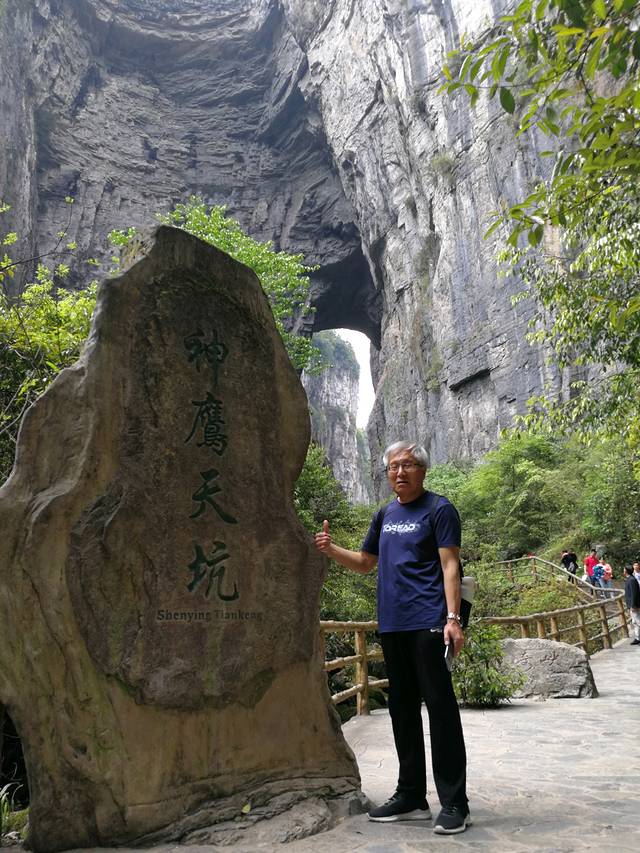 4月18日早餐后,9点我们到了武隆天生三桥景区(天坑),该景区位于重庆武隆县南20公里处,属于典型的陆地喀斯特地貌景观,具有“雄、奇、险、秀、幽、绝”的特点,景区内的三座规模宏大、气势磅礴的天生石桥最具吸引力,石桥分为天龙桥、青龙桥、黑龙桥,景区林森木秀,飞泉流瀑,涵盖了山、水、雾、泉、峡、峰、溪、瀑,令人赞叹不已。