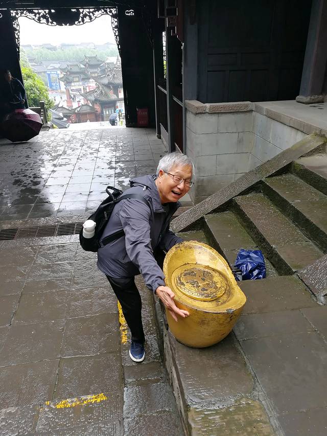 这位老人真贪财,想把玉垒阁内金元宝抱回家。😬