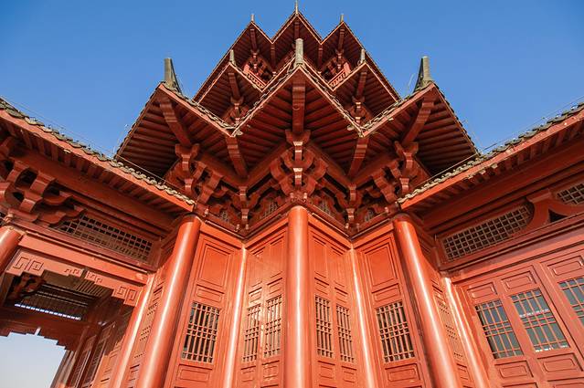 宜都,处在清江和长江的交汇地方。所以,这座通体为朱红色的古式建筑便有了“合江楼”之名。其实,合江楼一名并不是如今才有,这座古楼也是经历多次毁坏和重建的。据史料的记载,合江楼最早是在唐朝建成的。在明代时诗人的口中便有着“蜀川东下合清江,谁构幽亭托趣长”的诗句。在《宜都县志》内,也有着许多关于合江楼的记载。