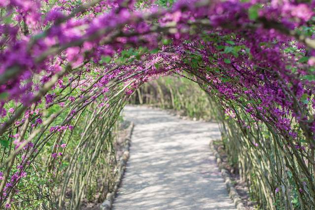 三峡九凤谷风景区,应该是此行我对宜都印象最深的一个景点的。这也是宜都地区等级最高,单日接待游人次最多的一个景区。随着多年的开发和建设,景区的各项基础和配套设施基本上都已经完备。在春天,一进入景区内的最大亮点就是满园盛开的紫荆花和紫藤花了。紫藤花以前每年在泉州的华侨大学内都能看到,而紫荆确实是第一次。