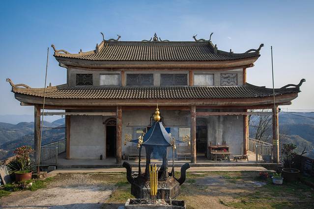 历经风雨,金顶的主建筑虽然略显老旧,当前来求签朝圣的香客却依旧是络绎不绝。就当地人介绍,这里的求签问卦还是十分灵验的,也因此金顶一直不缺游人和香客。除了能够问鼎梁山之巅朝拜道教胜地,在登临山顶的石阶上还能俯瞰宜都的群山,更何况我们在落日时分还欣赏到了难得的晚霞,也算对得起登山时挥洒的汗水了。