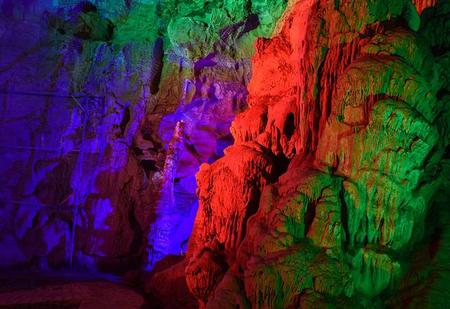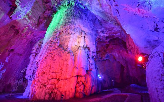 古潮音洞旅游风景区可以说是我们此行的最后一个景区了,它位于宜都市的聂家河镇,是由古潮音洞、渔洋河河休闲度假山寨组成的旅游风景区。除了有大型的石灰岩溶洞,景区内还有些许巴楚文化的痕迹,景区入口处的门头就是象征着楚文化的虎座凤架鼓。