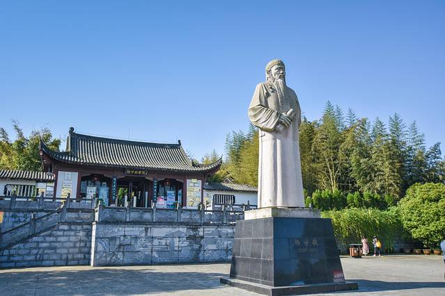 杨守敬书院坐落在介绍着三峡湿地景区自然资源信息的清源阁对面,书院门口便是杨守敬的石质塑像。这位生于1839年的历史地理学家被誉为“晚清民初学者第一人”,他的主要代表作便是“郦学”丰碑《水经注疏》。