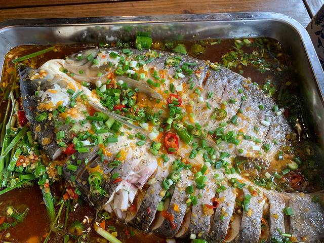墨迹到10点钟,起来之后健完身直接去吃当地排名最高的饭店。沱江的鱼还不错