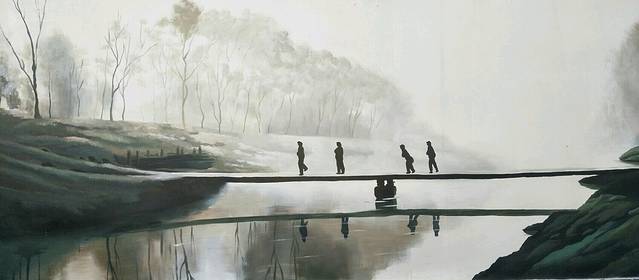 政一街路边墙上画了一路的画