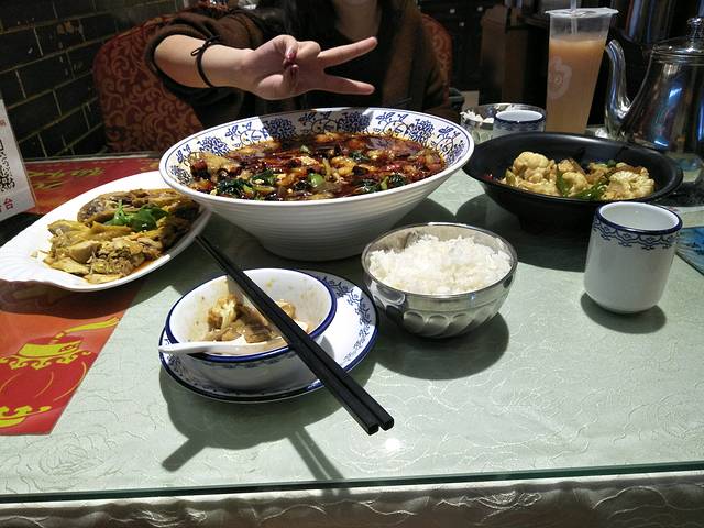这是我们吃完后过于浪费所拍,河南这边的饮食什么都喜欢勾芡且口味也不辣,哪怕是我们在路边买的臭豆腐最后都是勾芡了的,真的是万物皆可勾芡,别看中间的水煮鱼片看上去很辣,都是假象而已