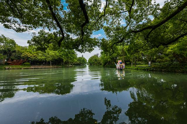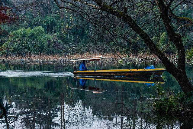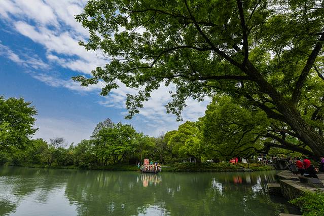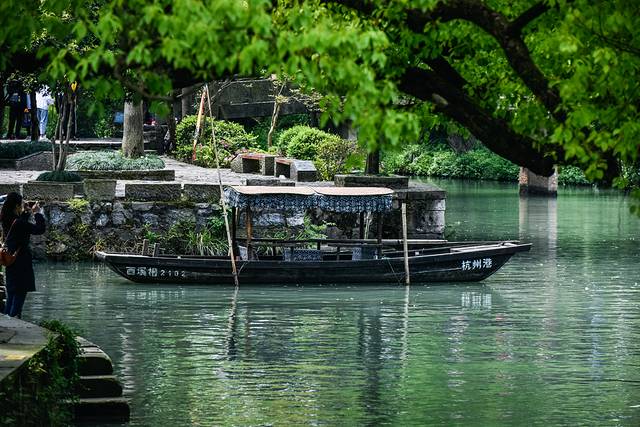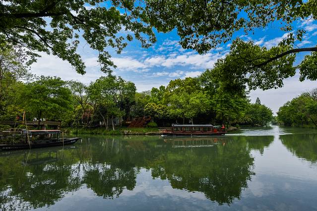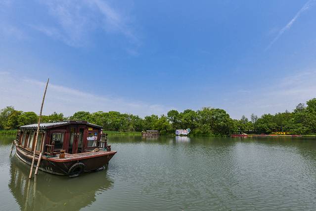 船在湖水的中央慢慢的移动,形成了诗情画意般的国画里的场景,这样的美景怎能不惹人爱呢?这里常年是湖光山色、山清水秀、绿色覆盖率居西湖景区内之冠!是很值得推荐游玩的地方。