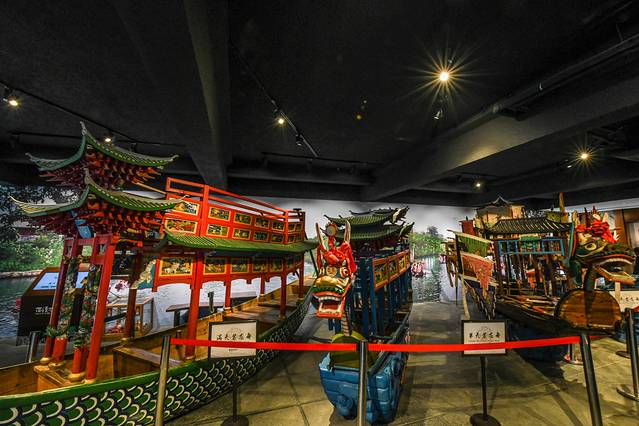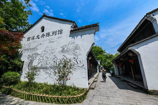 河渚街一带其实在以前就是一座古镇,是当时西溪人家在这里居住的地方,这里的民俗方面都有自己的博物馆呢,诸如这座代表西溪龙舟文化的龙舟陈列馆。