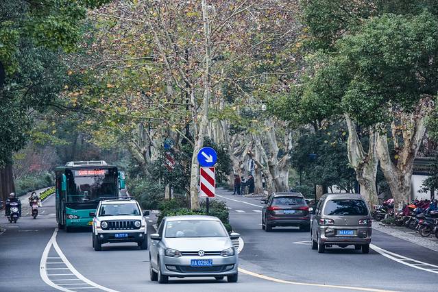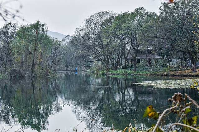 既然多说人都认为杭州西湖的美与天气有关,那么阴雨天的杭州西湖是什么样子的呢?眼前这里就是阴雨天气时候的西湖了。走在湖边任何的一个角落里即可欣赏到本应该枝枯叶落的景象,然而看到的是一片红黄绿争艳的氛围,真的是太美了。