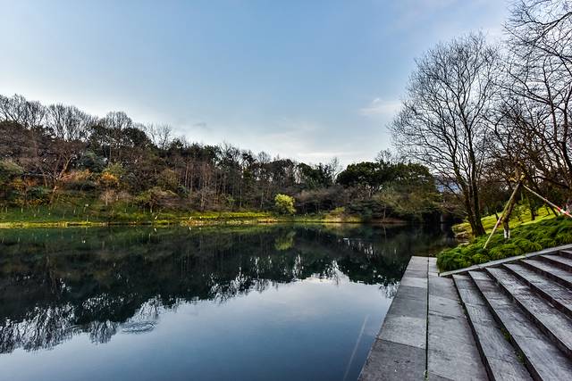 山水园林建筑在杭州非常的多,所以在这里随处都可见,乌龟潭景区也是为数不少。一边是走廊一边是湖水,这样的环境下读书估计心情都会舒服很多呢。半山半水的景色是吸引山野君来这里的最主要原因,你想不想跟我一起来这里走走看看呢?