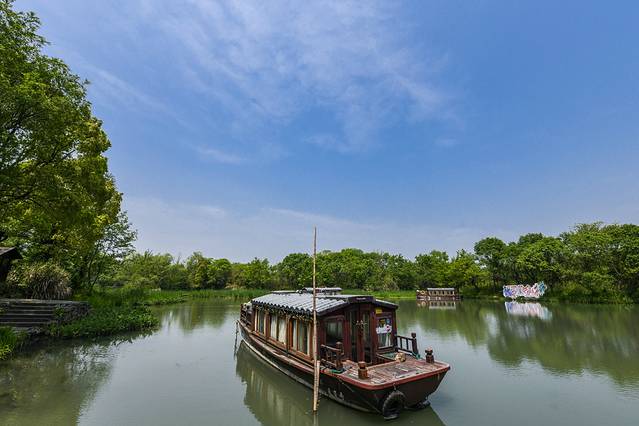 西溪湿地公园因《非诚勿扰》这的综艺节目而变得名声鹊起,不过它在几百年前也是一处自然的田园风光,这里是文人墨客钟爱的地方。当年拍《非诚勿扰》葛优与舒淇相亲的摇橹船就在这里了。