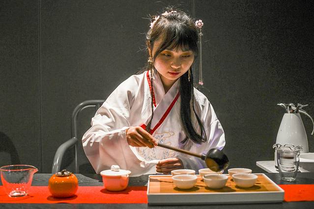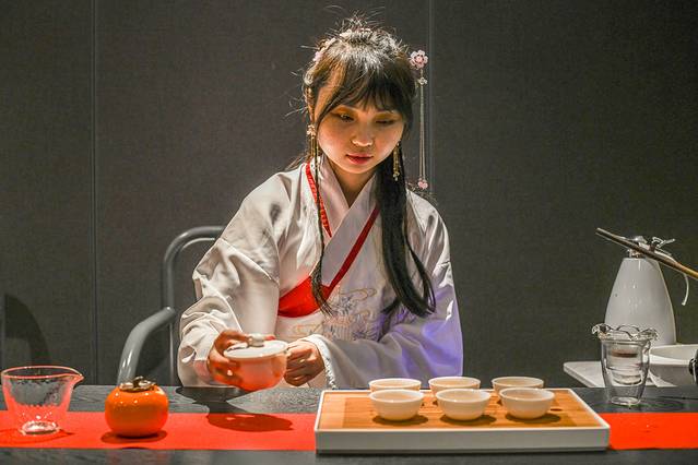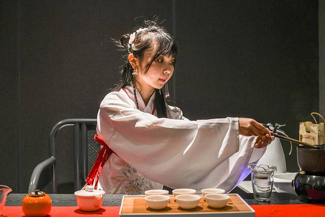 下午茶除了传统的甜品与水果之外,还有东方特色的功夫茶呢,可以与汉服妹妹一起品尝下午茶的美好时光,感觉赞爆了。