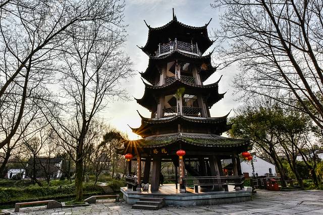 看似一座非常普普通通的小塔,其实很不一般的,登塔即可欣赏到壮观而美丽的西溪湿地美景,这样的美景实在是太令人舒服了。