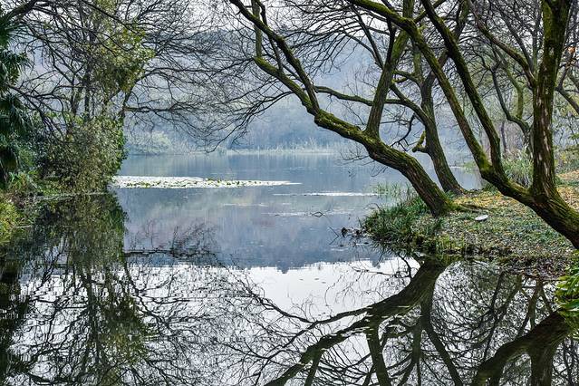 乌龟潭作为西湖杨公堤和三台山路一带重要的湿地公园,其作用是非常大的,甚至作用不亚于西溪湿地。而乌龟潭的传说更为这里增添了非常有意思、神秘的文化气息。在园林框架下衬托出来的乌龟潭景区,真的是像一副画卷了哦。当时我觉得这样的搭配非常的有诗情画意的味道,于是按下了快门记录了这一幕。
