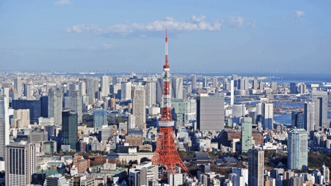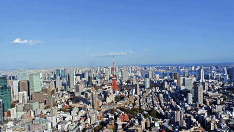 登上六本木Hills瞭望台能够看到东京塔的正面