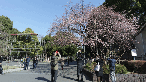 3月初的上野公园,樱花已经开始盛开