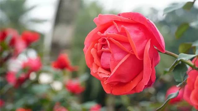 绯扇,月季的一种,花色鲜红,植株半直立,较高,长势强健,抗病力强。大型花,花径12-14cm,花瓣40-45枚。味淡香。
