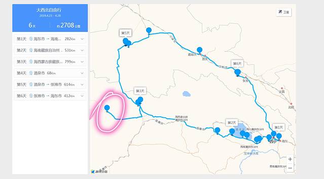 本次旅程的路线图 其中圈起来的是水上雅丹
