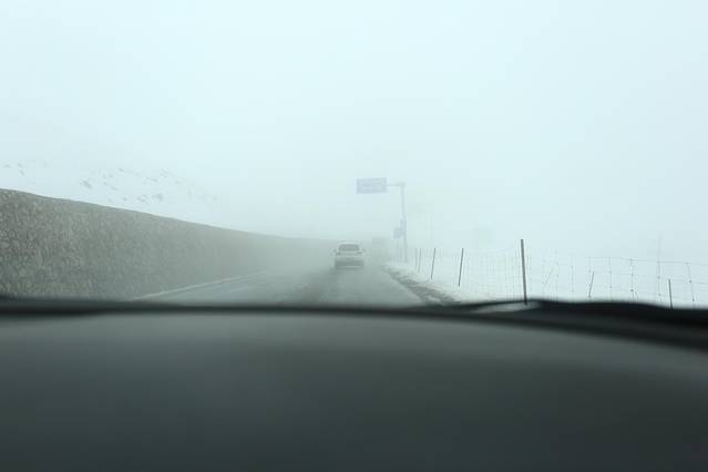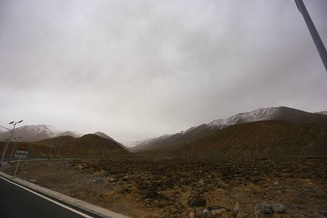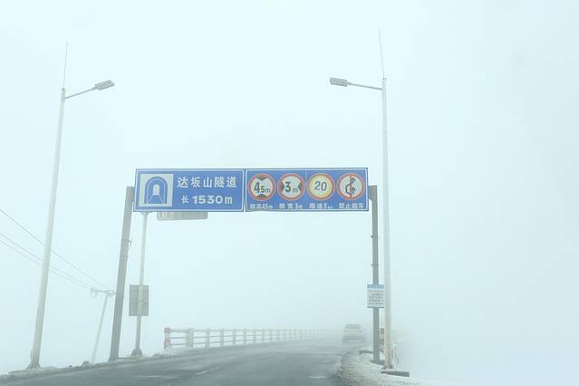 从甘肃回到西宁,又要翻山越岭,其中翻越达坂山便是本次旅行最险峻最难走的路段。我们在山脚下天空便下起大雨,来到半山腰,雨变成雪花,加上大风和大雾,能见度一步步下降。此时我的心又一次紧张起来,经历了戈壁的风沙,这又是我第一次面对如此恶劣的天气。公路的一侧便是万丈深渊,此时需要专注再专注,稍不留神便有可能出现意外。
