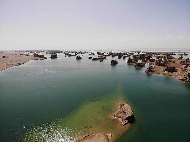 一番拍拍拍后,继续向前大约一个小时,便到达水上雅丹。门票90/人,需要坐景区的车进去,由于这个景点刚刚被开发,里面的设施并不完善,但是景色没话说,可以说非常震撼了。此处景点是最适合无人机航拍的,换一个角度,感受大自然的鬼斧神工。
