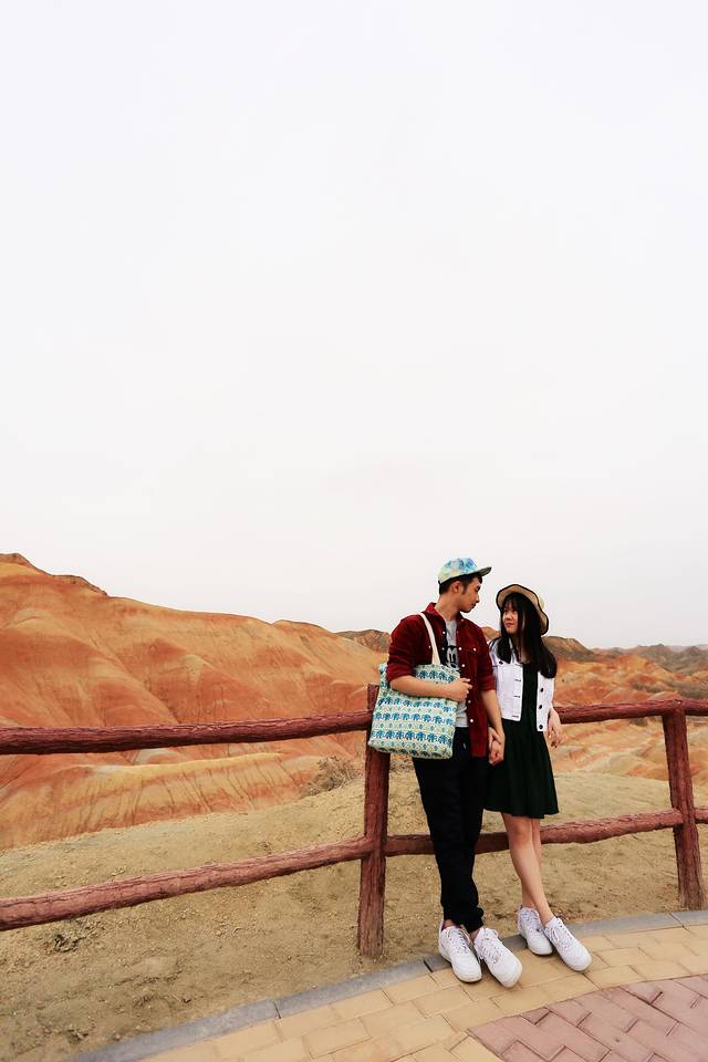 嘉峪关出来,前往今天的重点——张掖七彩丹霞。嘉峪关到七彩丹霞景区路程约两个小时。到达景区已是下午五点了,在app上买了票进入景区,需乘坐大巴到观景台游览。