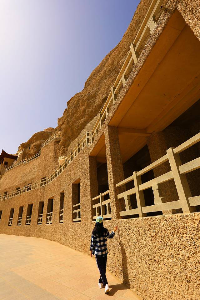 莫高窟著名的九层楼 里面存放着莫高窟最大的一尊佛像