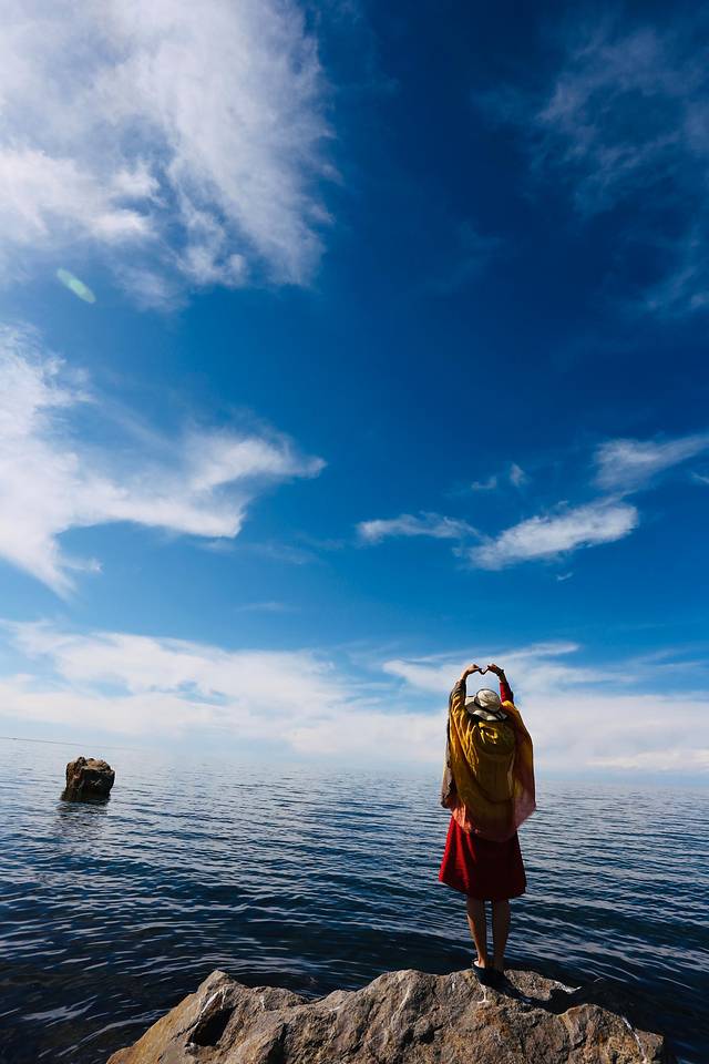 此时的玲姐顾不上高反头疼和有可能把自己晒黑的紫外线,拿出我们的单反和无人机,记录下这海天一色的美景。