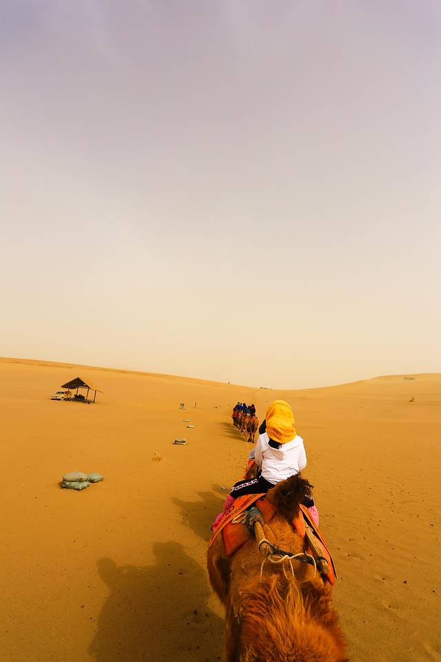 骑骆驼的中途师傅会给我们拍照,拿自己的相机或手机,20/人拍很多照片,总体来说师傅的技术还是不错的,就是心疼我的相机,昨天刚掉沙子里,今天又被灌进一堆沙。景区外有鞋套和相机套买,建议买一个,毕竟相机很贵~但是对于无孔不入的沙来说,这些只能尽可能减少伤害,出了景区,你会发现口袋里包包里全是沙子~