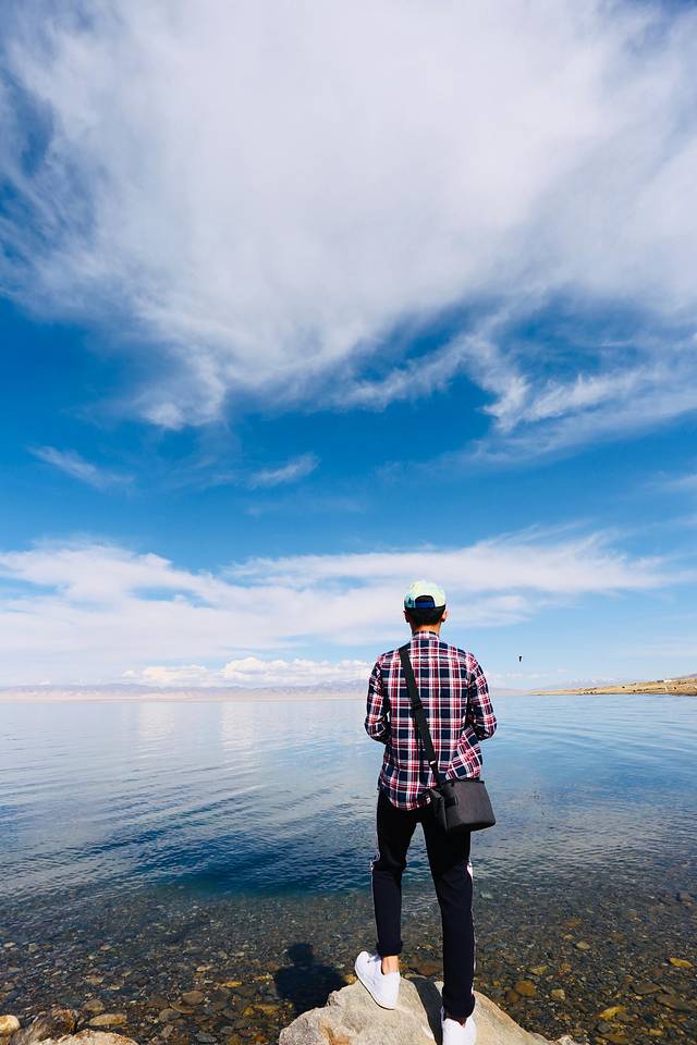 第一眼见到青海湖,再华丽的辞藻,也无法形容出她的美。青海湖的蓝,蓝得纯净,蓝得深湛,也蓝得温柔恬雅。说这是个湖,倒不如说这是个海,那蓝锦缎似的湖面上,起伏着一层微微的涟漪,温柔中透露着几分大西北的粗犷。