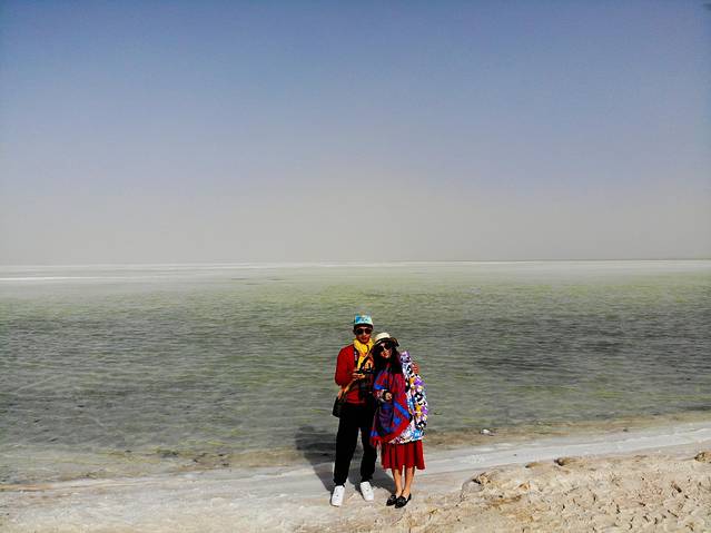 乘着小火车来到盐湖可以涉足的最深处,眼前所见的还是和理想中的茶卡有很大差距。我们去到的当天风非常大,湖面泛起了波浪,并不能看到湖中的倒影,而且气温较低,为了不感冒,我们还是决定不下湖拍照,就在岸边拍拍小火车之类的~大约一小时我们就离开景区了。