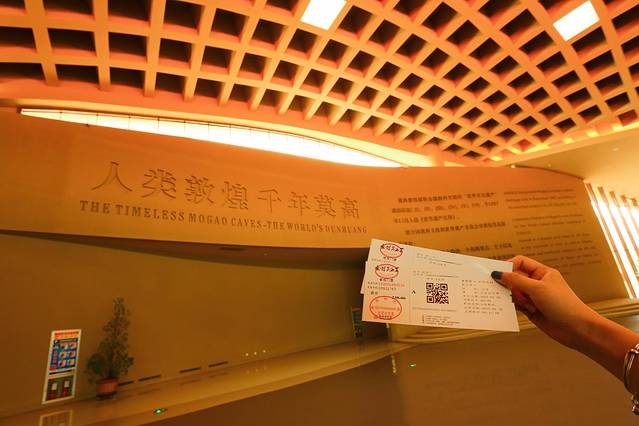 莫高窟的历史想必不用赘述,是我国不可多得的艺术宝库。四月份已是莫高窟的旺季,票价当然是比淡季要贵不少,238/人,需要提前一周在官网上实名购票,现场用身份证取票入场。旺季可以观看莫高窟的8个洞窟并有专人讲解。