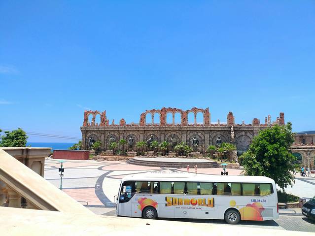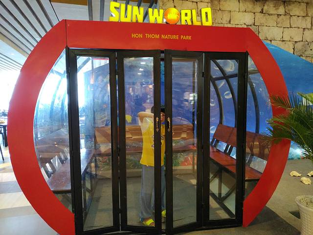 门票是司机带我们去买的,网上也可以定,也可以去门口买。网上都说自助餐很难吃,所以我们没有买含餐的套票,缆车的终点站在香岛,岛上正在施工,反正我跟高贝贝坐过去就马上坐回来了,太阳太大了。