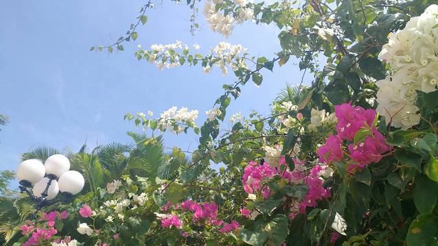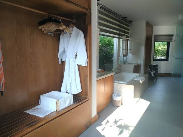 珍珠酒店的私人沙滩很干净,沙子细腻,服务和环境也是超棒的,可惜我们只住了1.5个晚上。后来住到贝壳,感觉落差好大,贝壳的沙子杂质好多,但住的是villa,每栋房子周围用树木围起来,私密性不错,还可以在自己院内的树上挂个绳子晾衣服。