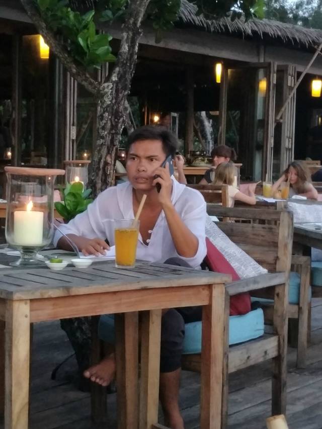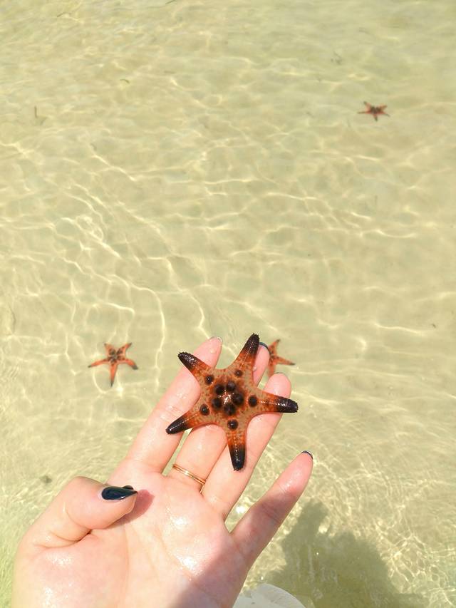 在这个陌生又原始的小岛要想深度游,玩的开心又舒适,就需要找一个地陪啦,而且去看海星要包船出海才能到达那片安静美丽的原生态沙滩。所以我们找到了小刚,订了2天的行程,小刚是本地人,专做定制自由行,会讲一些中文,但是看不太懂汉字,所以聊天最好是语音。他的英语讲的比中文更好些,是一个很会玩的小伙子,深得小朋友的喜欢。最重要的是他很会用手机拍照哦,我们都说他是被导游事业耽误的摄影师。为了给客人们拍摄浮潜的照片,还特地买了一个GoPro,然而很可惜,我们出海的那天,他才刚收到还没有研究好,然后新的电池居然还没有电,充着电后来就忘记在快艇上了,浮潜的时候没有用上,巨大的遗憾!