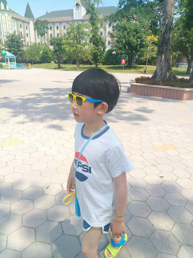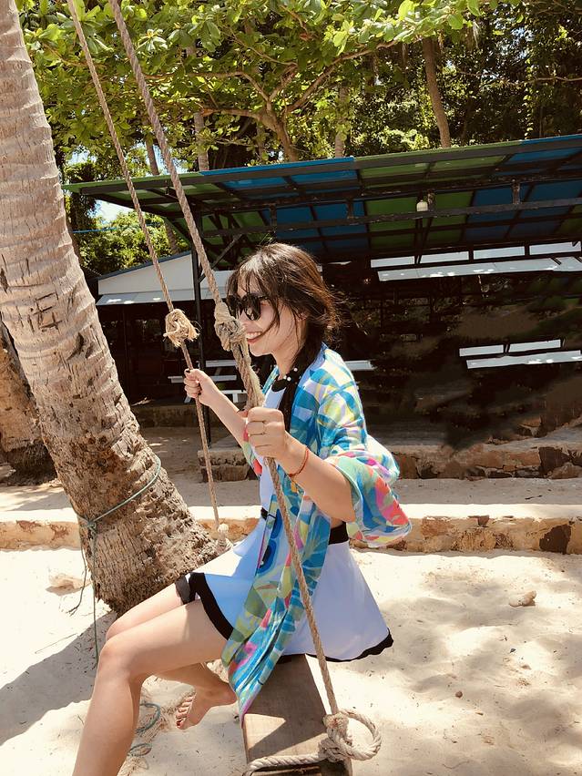 海钓结束小刚带我们停靠到了一个小岛先休息了一会,他带着高贝贝去玩秋千,给他拍照。