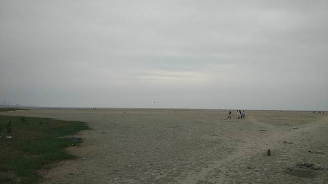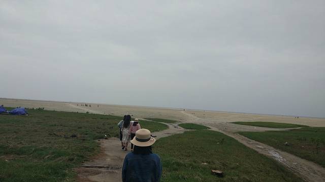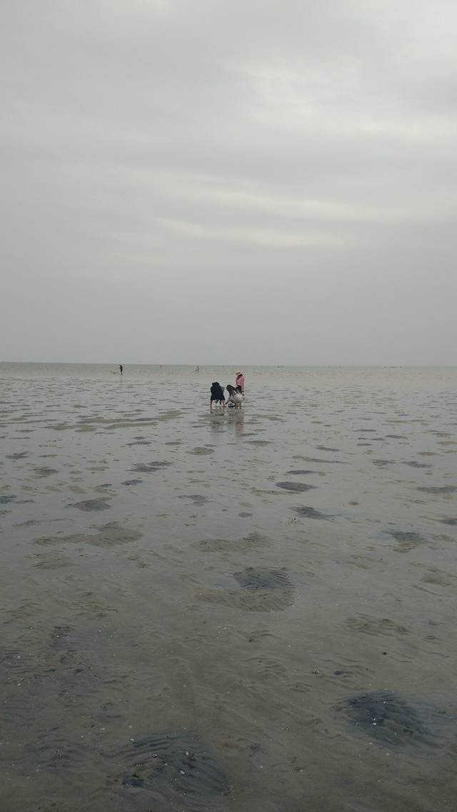 我们走了好久好久,才走到有海水的地方。这地方好像能一眼看到头,感觉不远,但走起来却不是那么一回事。