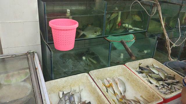 挑选好后可以直接上二楼加工,也可以去市场外面的饭店加工。