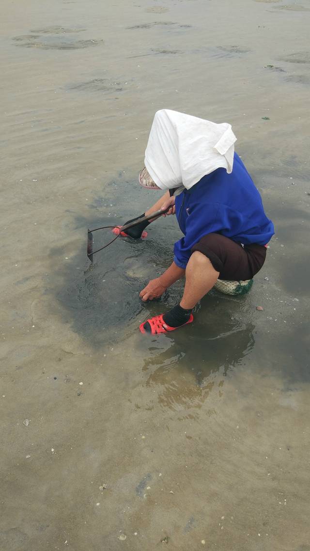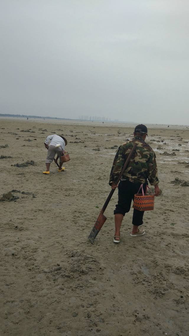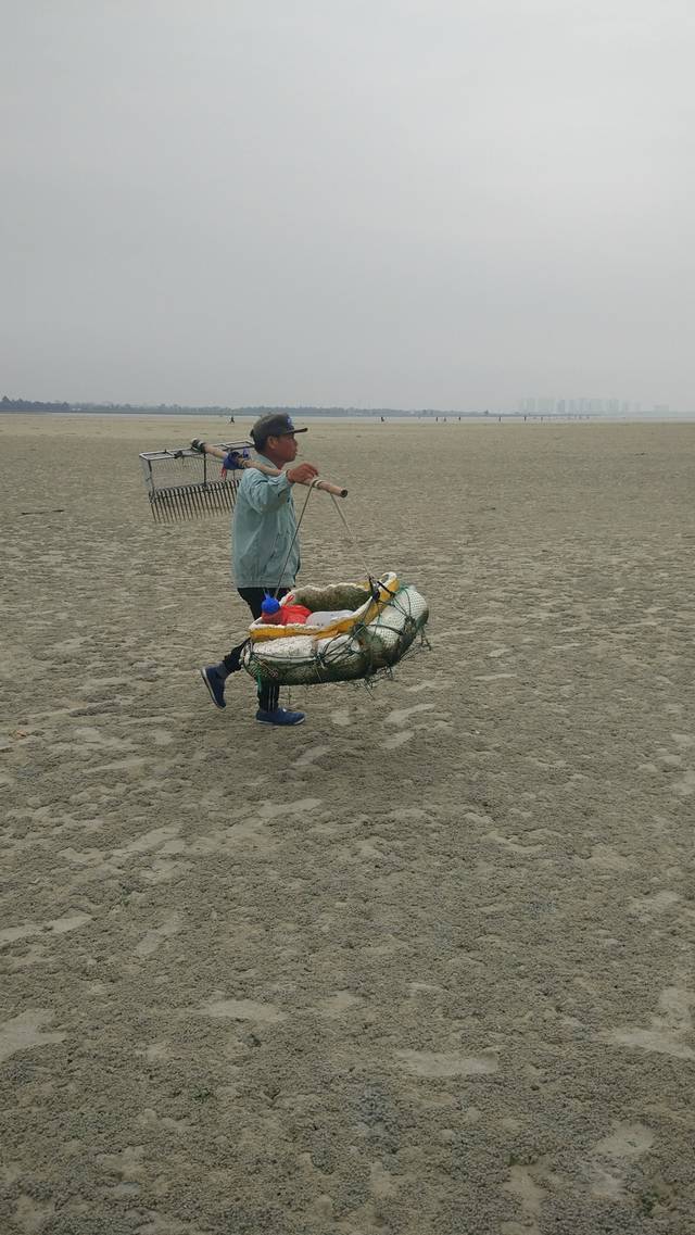 这个早餐吃得超饱,天然虾十分新鲜美味,汤底煮的粉条也好好吃。吃完后,我们就跟着老板屁颠屁颠地去赶海啦。我们去赶海的地方离我们客栈不远,就在北海银滩东面两公里的地方。