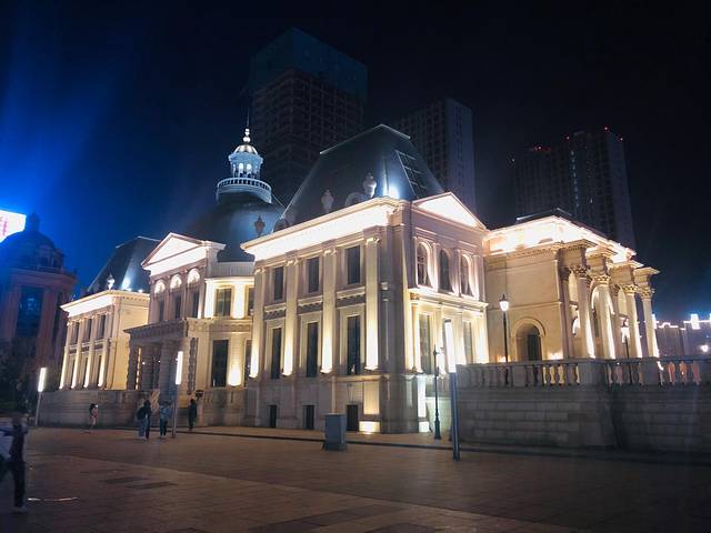 人民广场,是市级行政机关集中的城市中心广场,以南北相呼应的苏军烈士纪念塔和市人民政府大楼形成的中轴线为对称布局,市级主要干道——中山路在广场中部与南北轴线垂直通过。