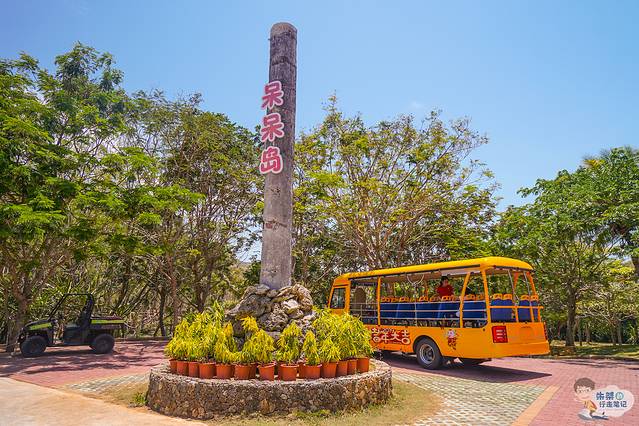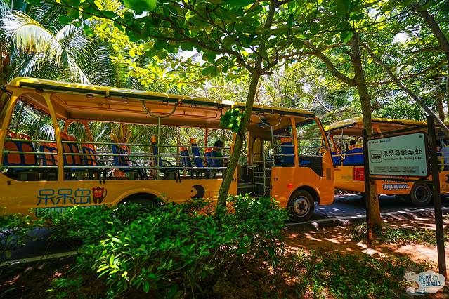 下了船之后径直走,有指示牌提醒前往呆呆岛的观光车,不要走错了,另外一条路是通往猴岛的。门票88元是包括往返船票、往返观光车票的,所以要保存好,乘坐观光车也是要另外验票一次的。