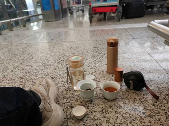 非得带出来,好的,就在机场喝上了,等了2小时总算可以飞啦,好激动