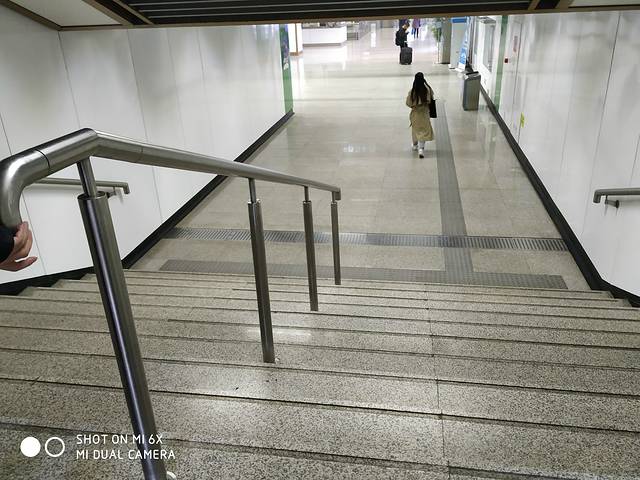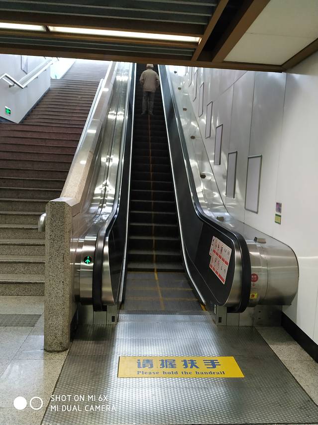 这是小市站的1号口,有7、8个楼梯,上去以后才能坐电梯。