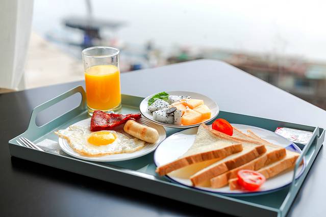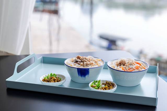 爱吃鱼餐厅的早餐也是颜值满满,西式的面包煎蛋香肠配西瓜汁或橙汁,还有地道的桂林米粉,可以根据自己的喜好选择。