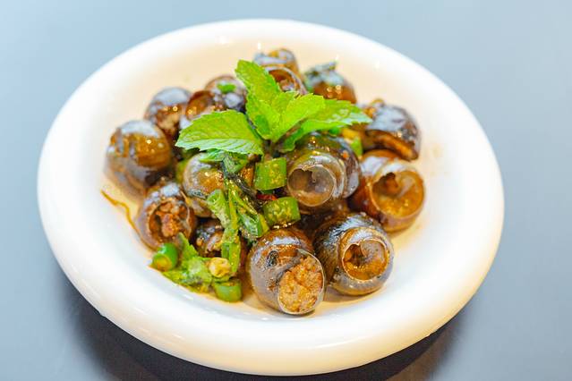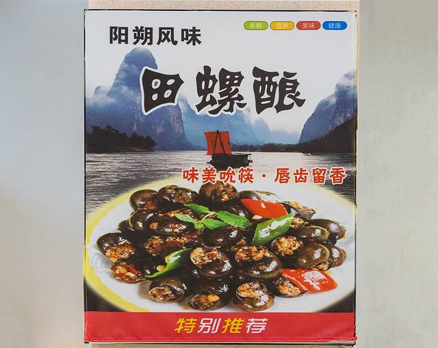 阳朔田螺酿,这是一道我每到阳朔必点的菜式,自从第一次吃过田螺酿以后,便再也忘不了它的味道!漓江水清澈,多产田螺,于是聪明的阳朔人,把螺肉、冬菇、猪肉酿进田螺之中,汁水鲜美,满满都是肉馅,特别适合喜欢动手觅食的食客。