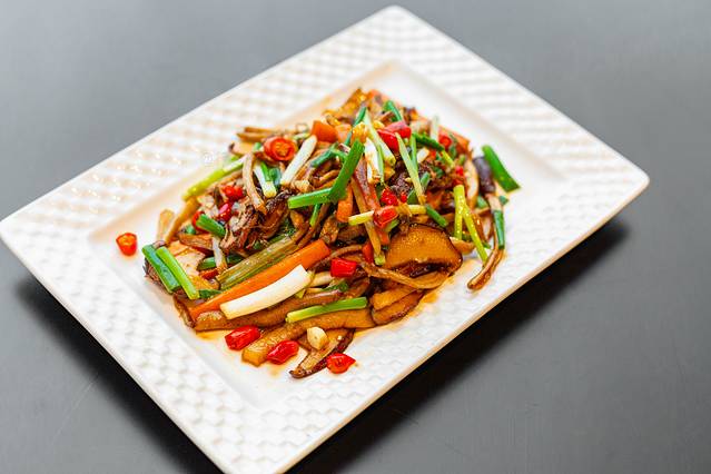 天香薄荷炒牛肉,孜然、薄荷的香气,已经完全沁入牛肉之中,香气缭绕的牛肉再配上干辣椒,口感复合多变,层次分明,绝对是酒客的最爱!