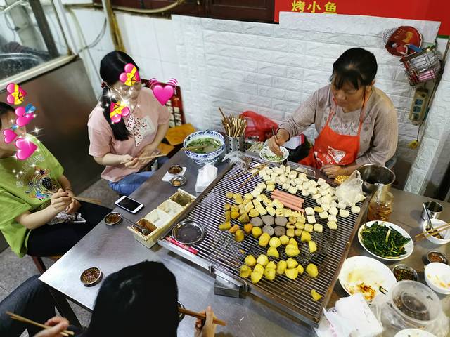去了建水一定要去吃烤豆腐,豆腐味道真的非常不错,记得点包浆豆腐和草芽。因为我们人多,所以差不多就坐满了一桌,我第一次去的时候是和一群陌生人坐一起,感觉那样更特别。这里的吃法就是围着这个烤炉桌随意坐。对了,吃东西的计数方式,是负责烧烤的阿姨用玉米粒计数,挺好玩的