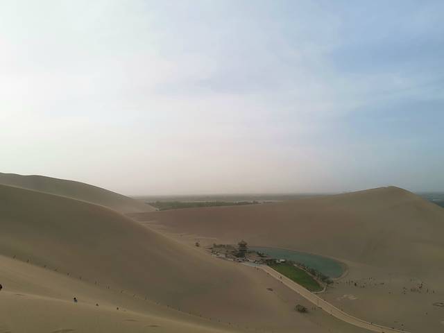 月牙泉。怎么说呢,还是值得去看看吧。留个纪念。只不过我觉得不值票价。景区很多沙漠都是不能走的,拦着的。怕游客出事,景区担责任。所以就尽量控制可参观范围吧。还是我们路上经过的玩沙的点好玩,自由且划算。