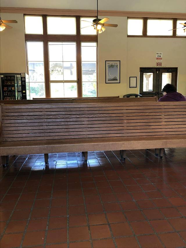 就这样走到了火车站,搭乘火车前往洛杉矶,火车站很有年代感,走廊还摆着这座火车站的发展史。有一个富态的老妇人安静的在看书,好像已经等了很久了,即使我们进来发出了声音他也丝毫没有关注一下我们的意思。