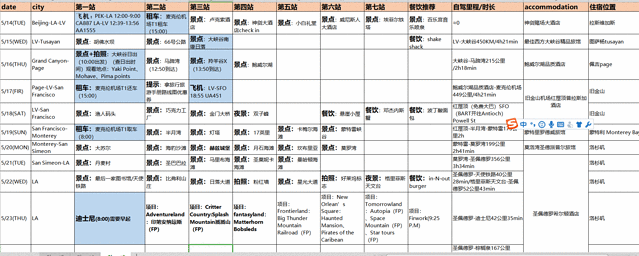 行程的摘要,一共有四张类似的表格,我想我当时一定是疯了