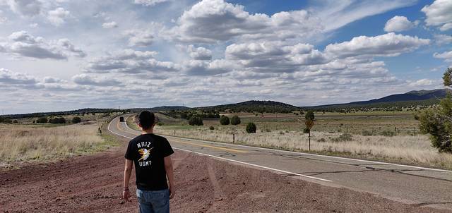 水坝稍作停留,开上了66号公路。好像他已经慢慢的被人们开始遗忘了,感觉道路其实已经年久失修,路上的车也很少,基本都是很当地的人开着一辆皮卡,导航拼命不让我们走这条路,费了好大劲才把导航引到66号公路上。因为有一条40号公路,可以直达大峡谷,是新修的,路况也比较好。66号公路途径了威廉姆小镇,其余基本都是大荒路,荒到前后都看不见一辆车。但是该STOP的地方我们还是STOP了。